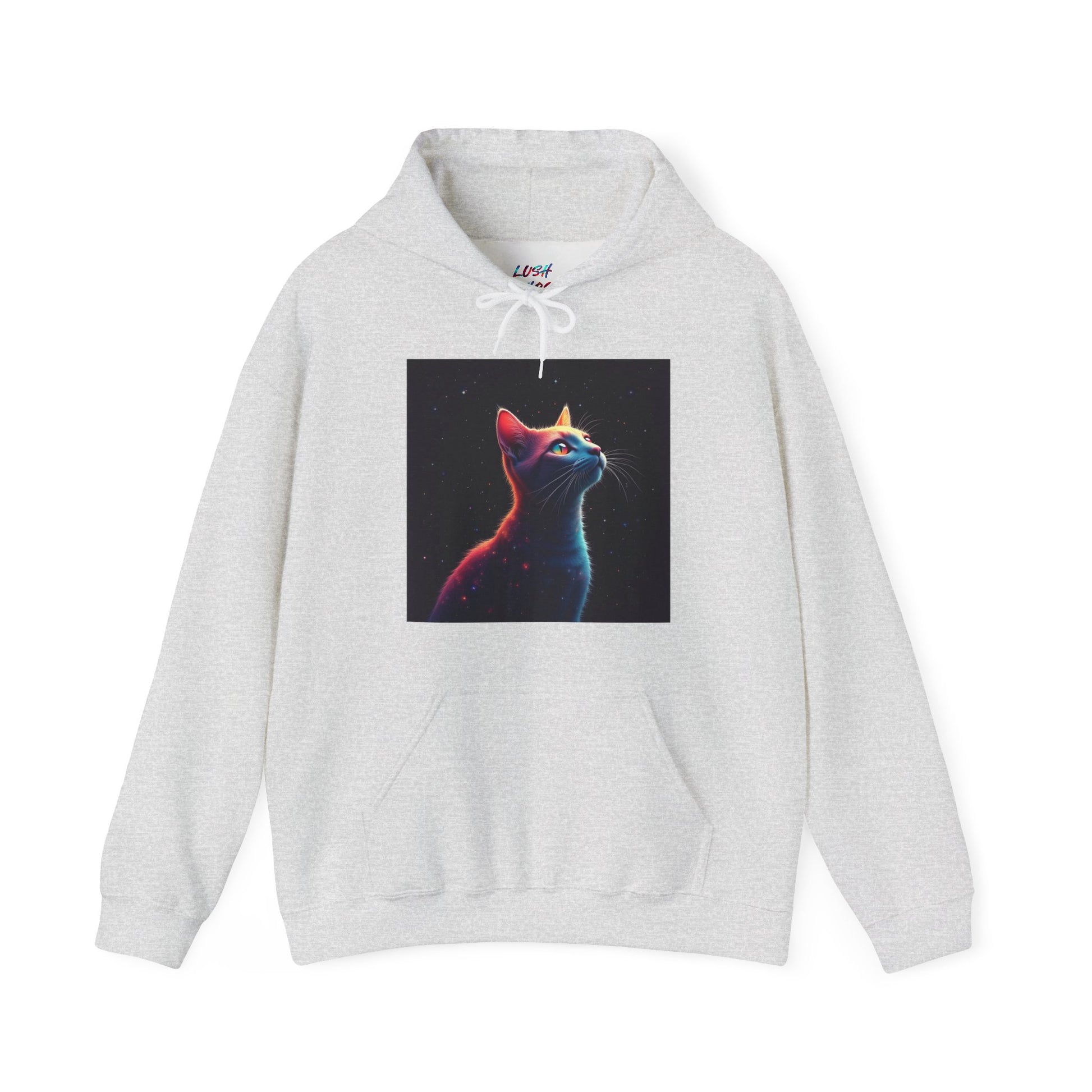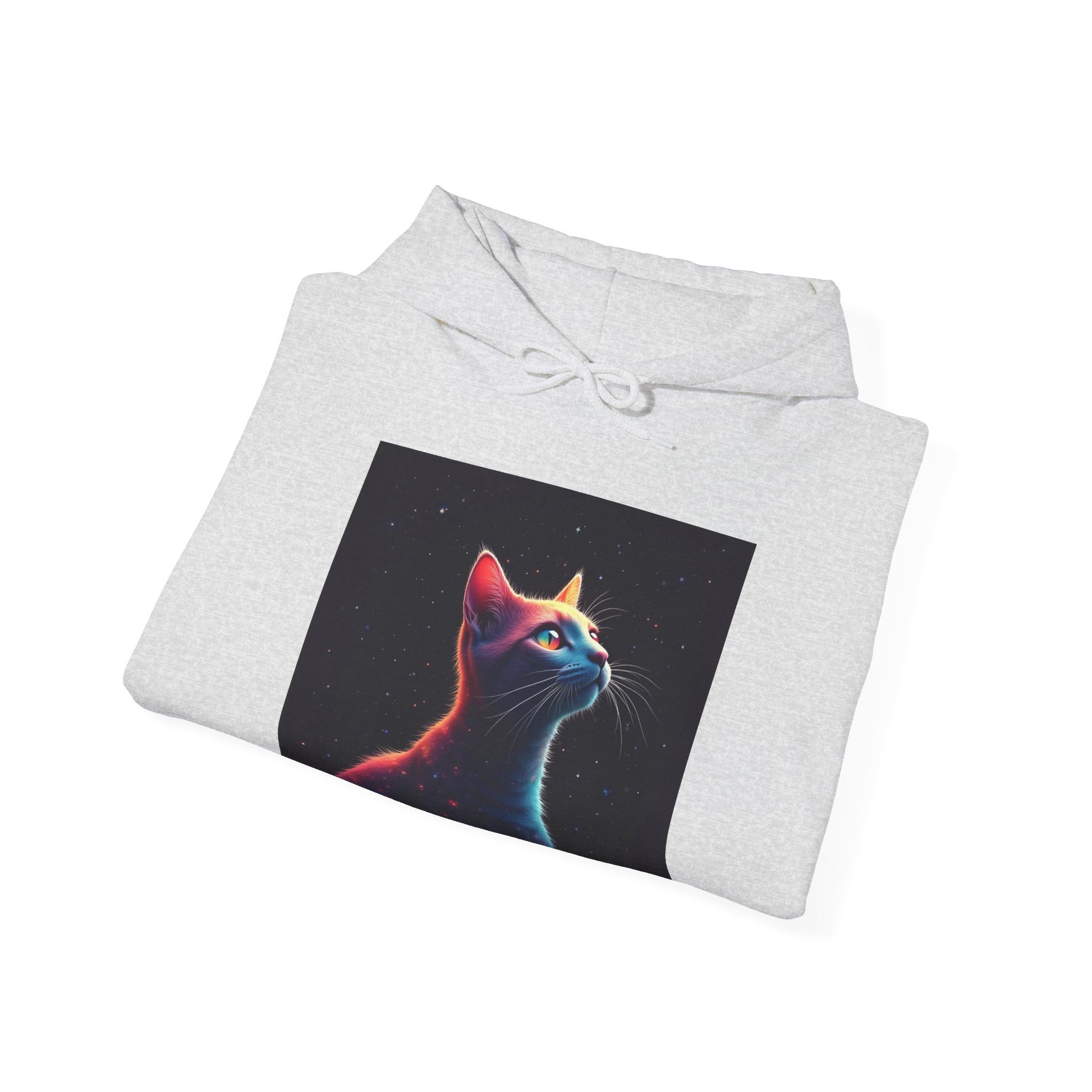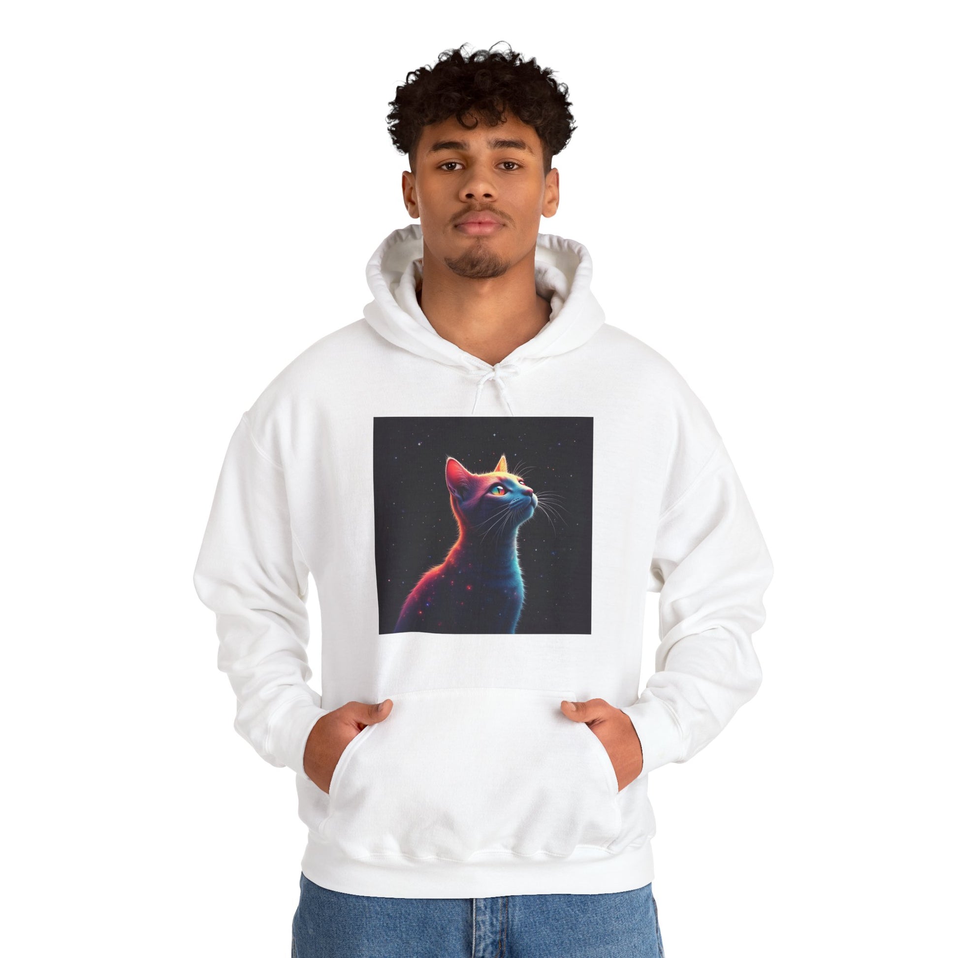 Wrap yourself in quiet wonder. This mid-weight hooded sweatshirt pairs a soft, cozy hand with a striking, neon-lit cat portrait that feels equal parts late-night city glow and private daydream. The roomy kangaroo pocket and double-lined hood hold warmth and small essentials. Clean lines and a classic fit make it easy to layer over tees or under coats, while the vivid DTF/DTG print keeps the art sharp and luminous wash after wash. Wear it when you want comfort that reads thoughtful — for slow mornings, nighttime walks under streetlamps, or just curling up with a book and a cup of coffee.